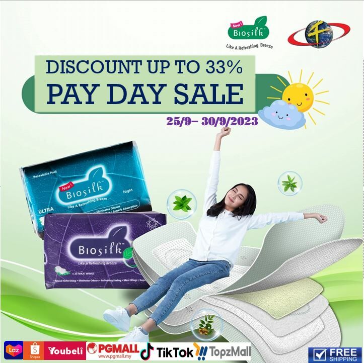 YEAH🎉~ Pay Day ~ Special offer discount up to 30% ! 🌿Stay comfortable and confident no matter what your day or night brings with Biosilk Herbal Sanitary Pads!👐🌿